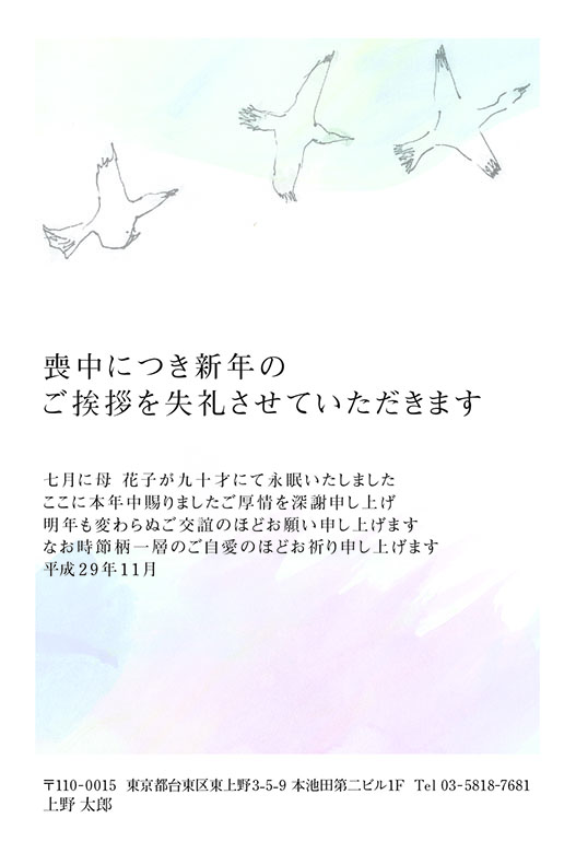 天高く大空を舞う鳥。おおらかなイメージで印象的な喪中はがきをデザインしました。